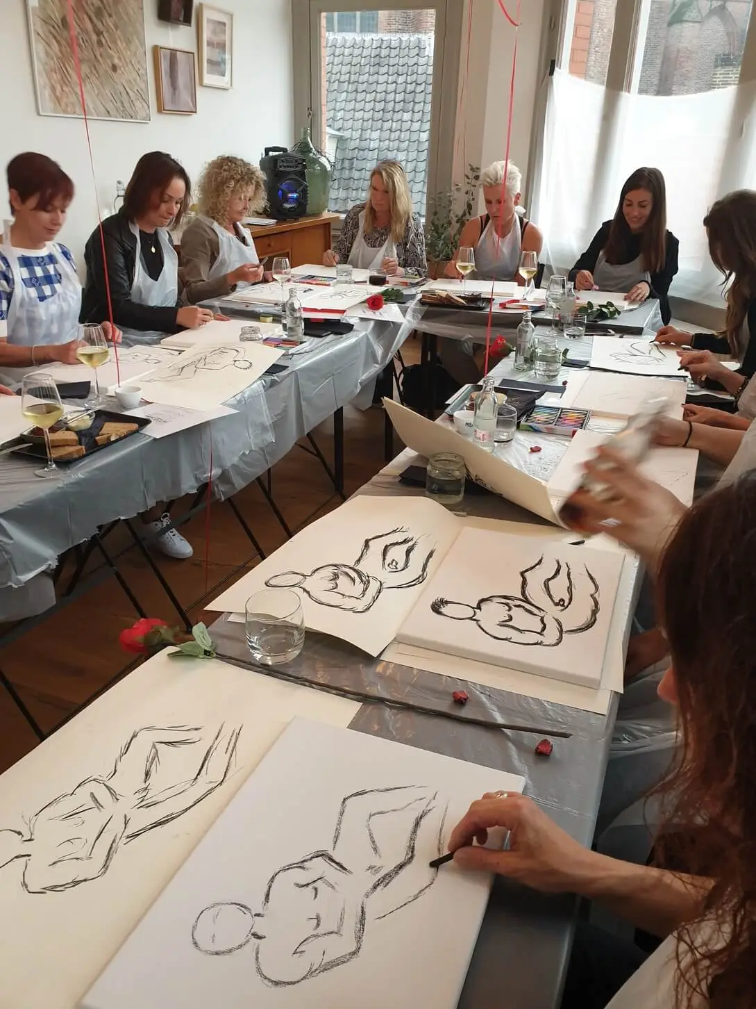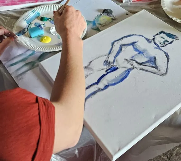 - Professionele begeleiding: Onze ervaren docent begeleidt je stap voor stap in het tekenen en schilderen naar naaktmodel. We beginnen met korte schetsen om de verhoudingen te leren en gaan daarna over op het uitwerken van een schilderij.