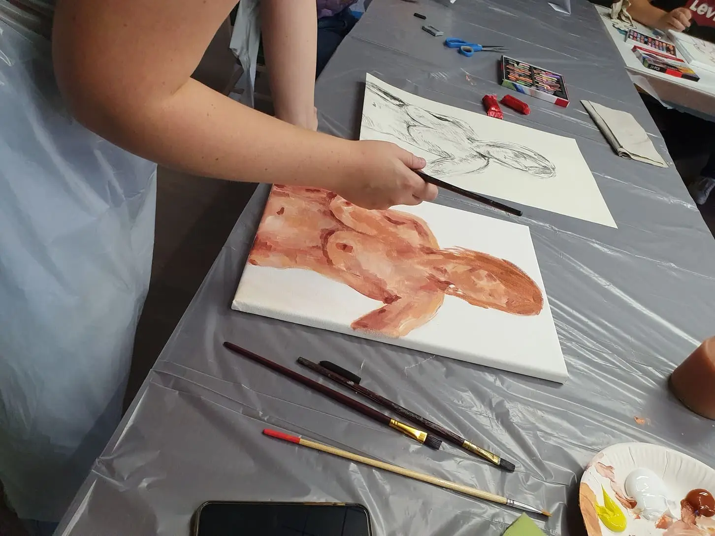 - Professionele begeleiding: Onze ervaren docent begeleidt je stap voor stap in het tekenen en schilderen naar naaktmodel. We beginnen met korte schetsen om de verhoudingen te leren en gaan daarna over op het uitwerken van een schilderij.